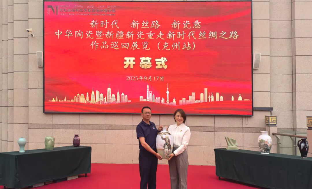 9月17日,新时代、新丝路、新瓷意——中华陶瓷暨新疆新瓷重走新时代丝绸之路作品巡回展览(克州站)开幕式在克州博物馆举行。