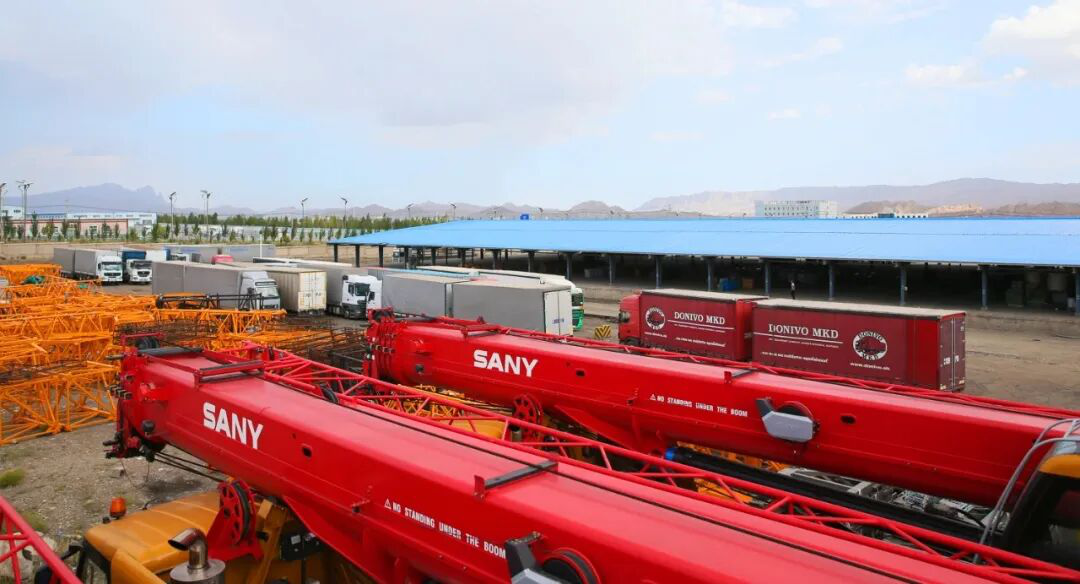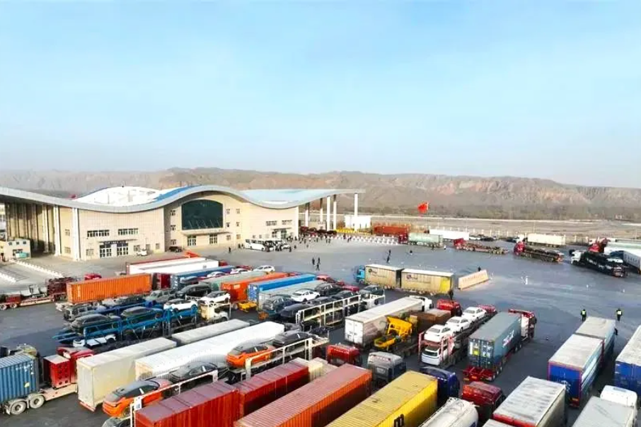 停放在伊尔克什坦口岸园区的进出口货物及车辆。