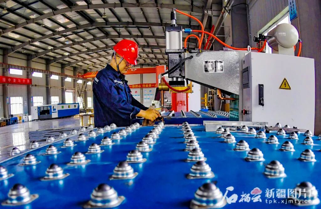 工人在位于昆山产业园的新疆埃尔法电梯有限公司车间生产电梯部件。