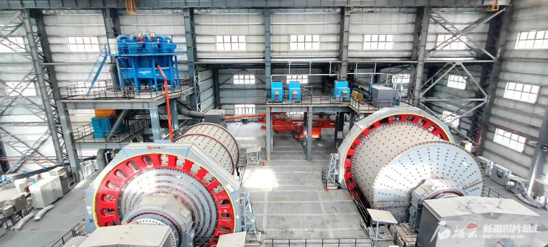 新疆紫金黄金有限公司矿山现场,磨浮厂房球磨机在运行。
