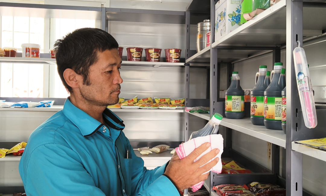 近日,记者来到阿图什市阿扎克镇库库力村的残疾人就业创业示范点,由旧集装箱改造的小商店内货物摆放井然有序。店主铁木尔江·阿布来提正擦拭货架、规整货物。他说:“以前没有收入、就业困难,在党和政府的支持帮助下,在家门口开了食品商店,现在每月能赚3000元,一家人日子过得踏实又满足。”