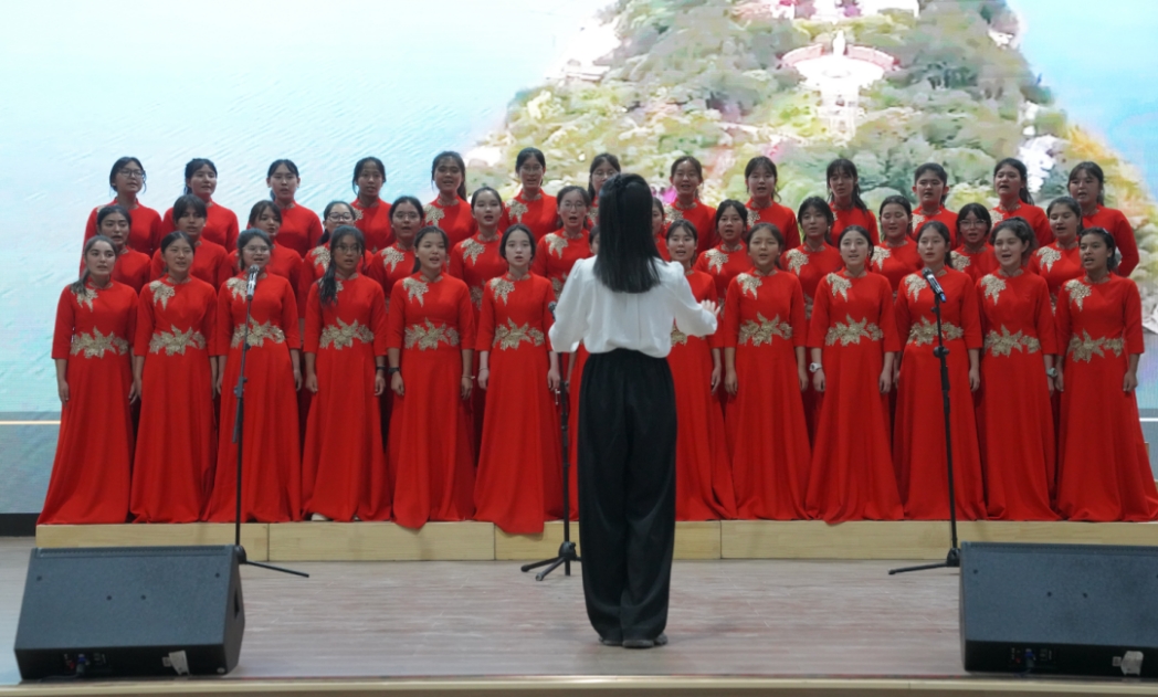 10月21日晚,新疆天山职业技术大学(克州校区)的演出现场座无虚席。音乐会在民乐合奏《欢乐歌》的悠扬旋律中拉开帷幕,扬琴独奏《节日的天山》巧妙融合边疆风情与江南韵味,琵琶演绎的改编版《兰亭序》与竹笛吹奏的《无羁》,以传统乐器奏响现代旋律,拉近了民乐与年轻学子的距离。