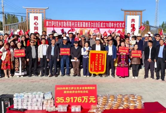 2025年9月,在阿合奇县25个村分红大会现场,哈拉奇乡哈拉奇村村民阿依达尔·艾山阿洪数着手里的9255元分红笑得合不拢嘴:“党和政府的政策太好了!”分红大会共分607万余元,惠及8507户、3万多村民,这正是党建和乡村振兴拧成一股绳的成果。