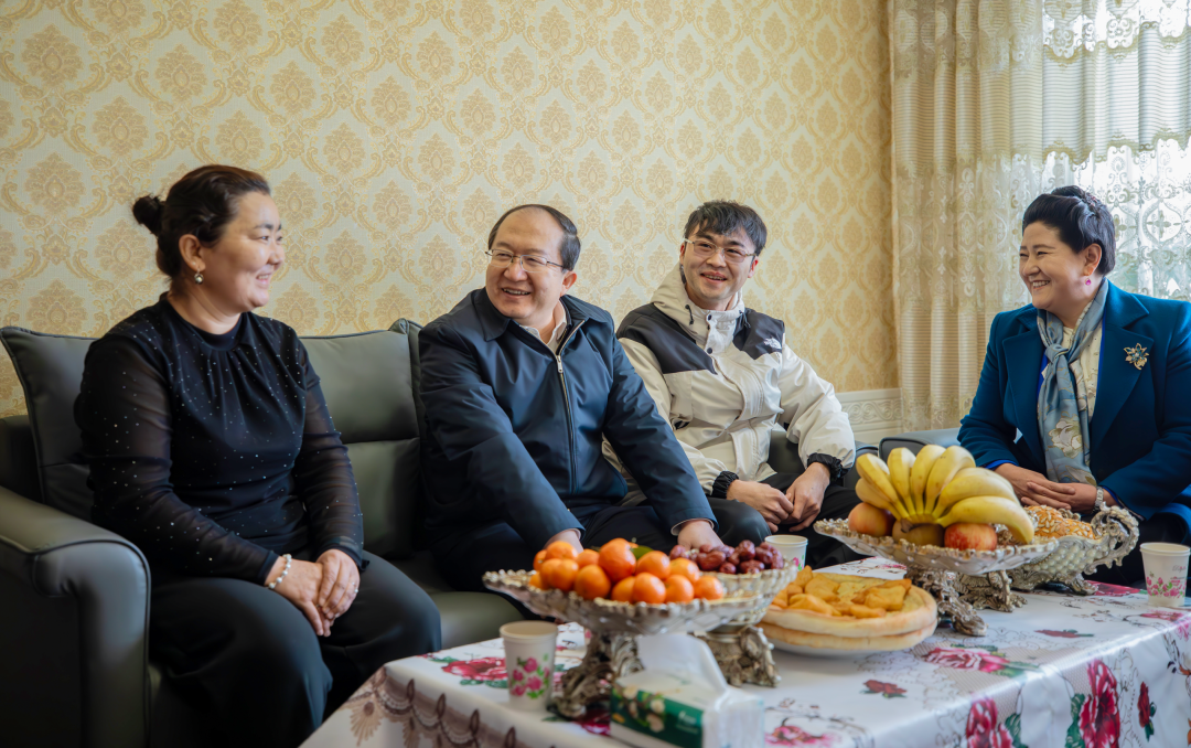 王学东等来到全国“最美奋斗者”荣誉称号获得者、全国优秀共产党员吴登云家中,亲切询问他的身体状况和生活情况。王学东说,您用自己的行动诠释了医者仁心和大爱无疆,是广大医务工作者和克州各族干部群众的楷模,您的情怀和坚守值得我们敬仰,希望您继续关心和支持克州医疗卫生事业发展。王学东对烈士遗属古力沙那提·阿不都克力木送去节日慰问,拉家常、问冷暖,详细了解生活工作情况。他说,党和政府永远铭记烈士,我们将大力弘扬、传承烈士精神。