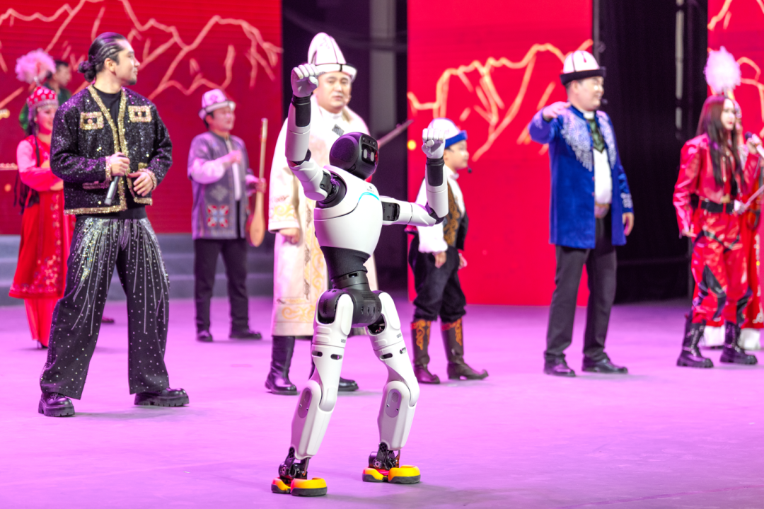 值得一提的是,晚会首次引入机器人元素演绎《盛世非遗玛纳斯》。机器人灵活的舞姿与演员的深情演绎相得益彰,将传统非遗魅力与现代科技活力巧妙融合,既彰显了克州春晚“非遗焕新”的创作理念,也让古老史诗焕发时代光彩,为新春文化盛宴增添了别样活力。晚会在尾声《春满征程》的《歌唱祖国》大合唱中落下帷幕,歌声嘹亮、气势恢宏,奏响了克州抢抓机遇、再创佳绩的时代强音。