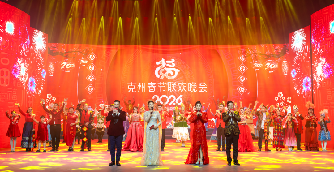 2026年2月10日晚,克州文化中心灯光璀璨、欢歌如潮,克州2026年春节联欢晚会拉开帷幕。以“马跃骉骉·福悦克州”为核心主题,紧扣马年吉祥寓意与克州高质量发展主旋律,围绕铸牢中华民族共同体意识主线打造四大篇章、21个精品节目,170分钟的多元艺术演绎为全州各族群众献上一场文化盛宴。