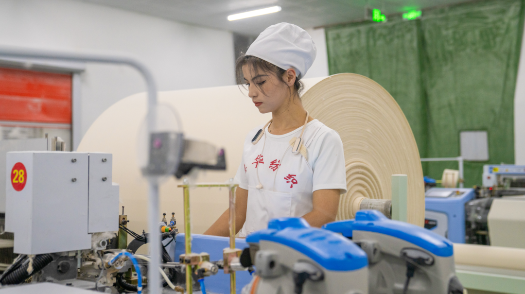 “2000多台喷气织机已全线满负荷运转,我们实行两班倒机制,日均产能稳定在110万米以上,全力保障订单按时交付。”公司织布厂副厂长高峰介绍道,企业在一期厂房满负荷生产的同时,稳步推进二期扩产建设,450台新型织布机正有序安装调试,为后续产能释放积蓄动能。