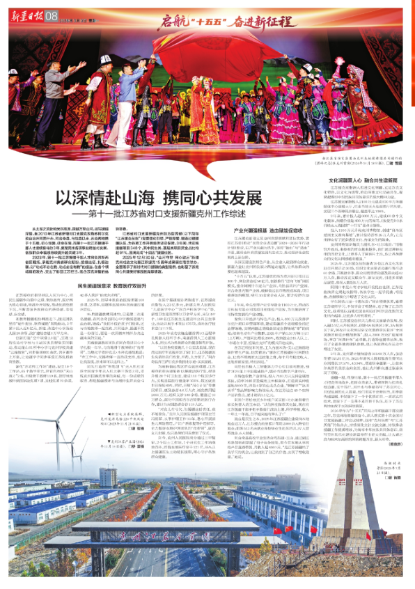 3月9日,《新疆日报》和《新华日报》同步推出报道,聚焦第十一批江苏省对口支援新疆克州干部人才三年援疆工作成效,全面展现苏克两地跨越山海、同心共建的生动实践与丰硕成果。