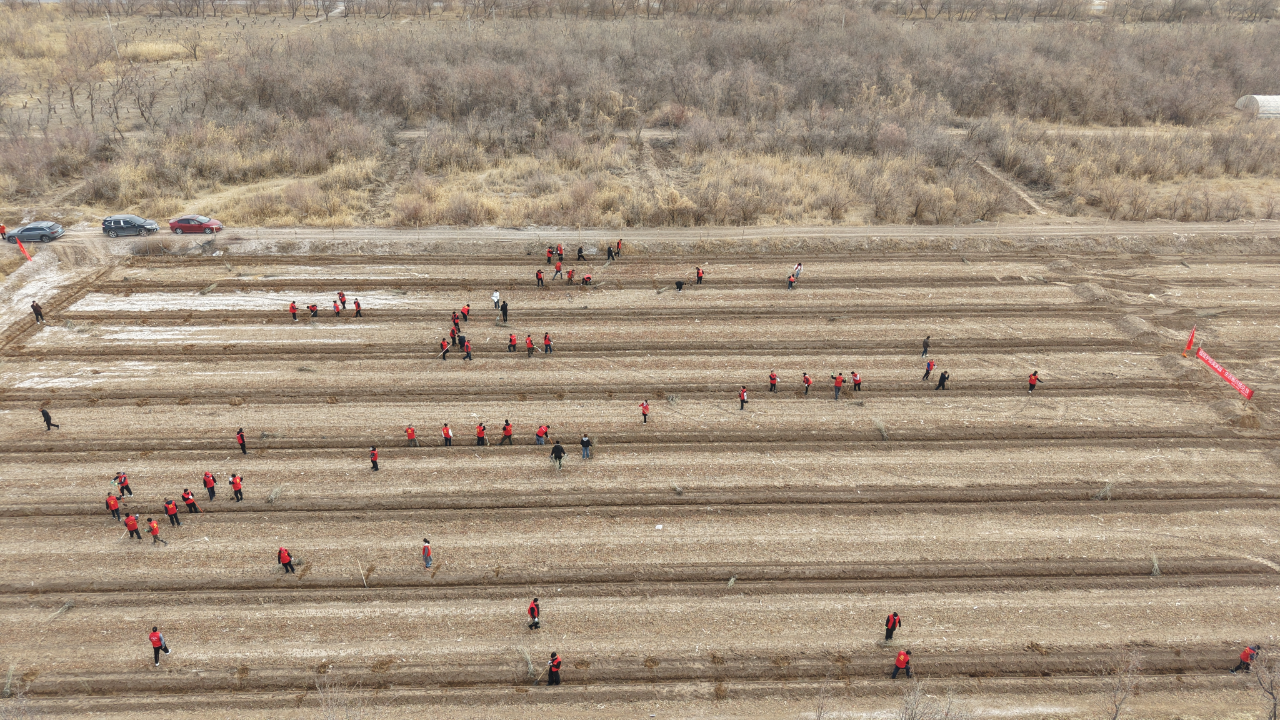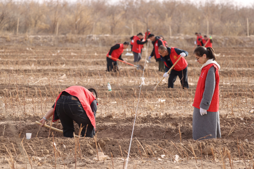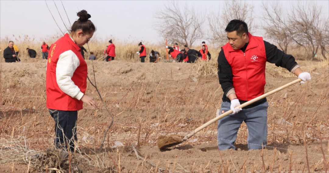 上午,乡机关干部们准时集结在预先规划好的种植区域,迅速投入到植树劳动中。大家分工明确、配合默契,三人一组、五人一群,严格按照农业技术人员指导的标准,细致完成每一道种植工序,确保树苗栽种规范、根系舒展。放眼望去,新栽下的300亩大果沙枣树苗整齐排列、迎风挺立,原本空旷的荒滩上,瞬间焕发出蓬勃的生机与活力,为初春的乡野增添了一抹鲜亮的新绿。