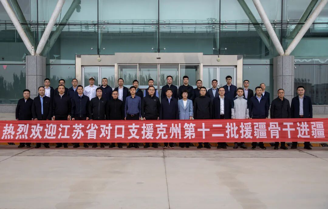 4月23日,江苏省对口支援新疆克州第十二批援疆骨干一行28人顺利抵达克州,正式接过对口支援的“接力棒”。州委副书记、江苏省对口支援新疆克州前方指挥部党委书记、总指挥蒋同进,州委常委、组织部部长王菁等到机场迎接。