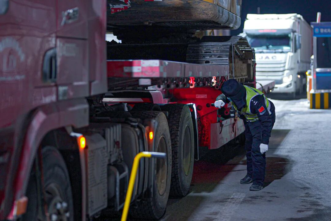 帕米尔高原的3月,夜间气温骤降至零下,冷风裹挟砂石拍打着查验岗亭。伊尔克什坦口岸的“深夜模式”才刚刚开启,这里没有昼夜之分,只有通关车辆的引擎声、民警规范的指挥声,在寂静的高原夜里持续回响。“夜班最大的挑战是寒冷、困倦,还有随时可能出现的突发状况。”刚结束一轮车体查验的民警刘科均说。为保障24小时通关不间断,民警们分组轮换,全天候在岗在位,哪怕凌晨两三点也始终保持高效运转。