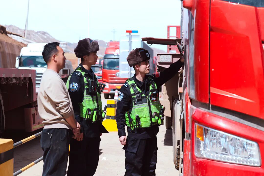吐尔尕特出入境边防检查站入境车辆车体查验现场