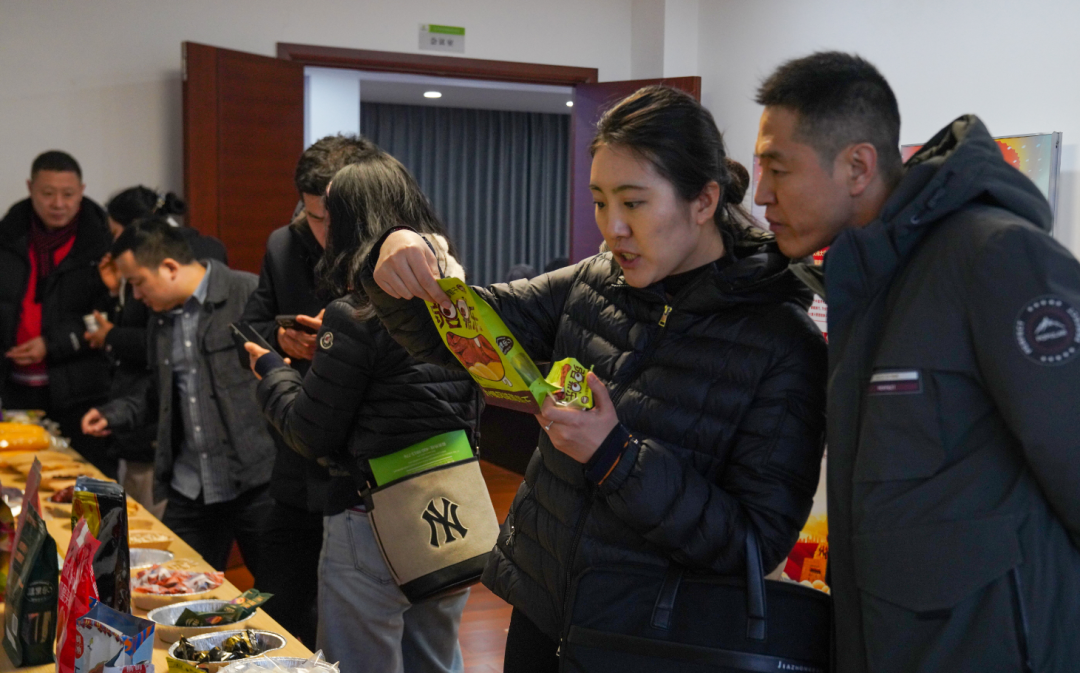 活动现场人头攒动,暖意融融。展销区内,色泽鲜亮的黑枸杞、果肉饱满的无花果干、酸甜可口的沙棘原浆、肉质紧实的牛羊肉整齐陈列,引得市民纷纷驻足品鉴、争相选购。苏州市民王世东说:“没想到在家门口就能买到正宗的新疆特色产品,我最喜欢喝沙棘汁,没有添加剂,准备多买几盒带给家人朋友品尝。”