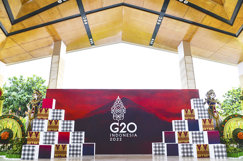 这是2022年11月11日在印度尼西亚巴厘岛拍摄的二十国集团领导人第十七次峰会会场外的标识。新华社记者 徐钦 摄