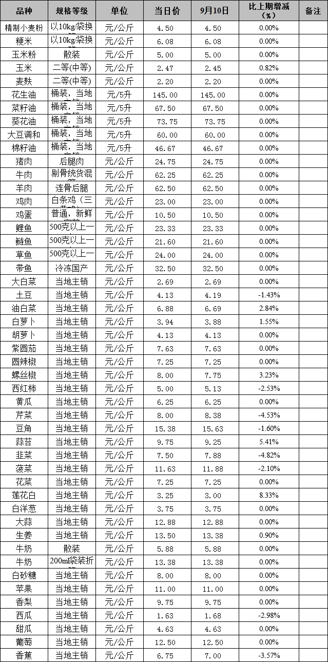 克州肉、禽、菜、水产品价格应急检测表9.17 (公示)