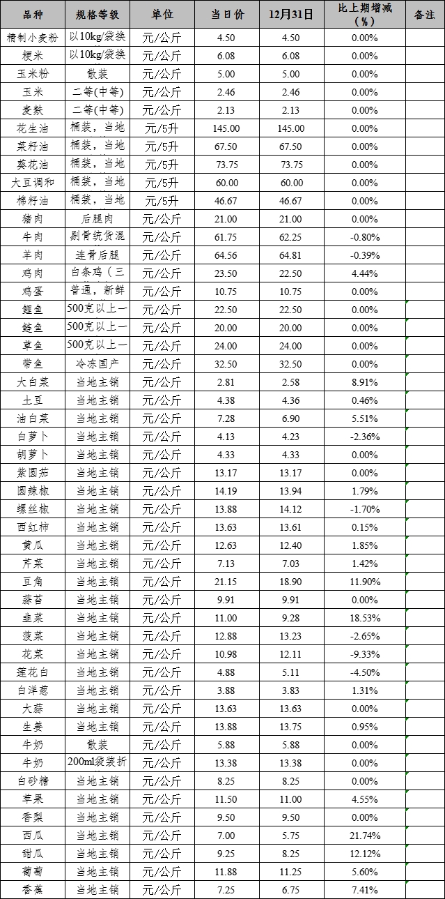 克州肉、禽、菜、水产品价格应急监测表1.7 (公示)