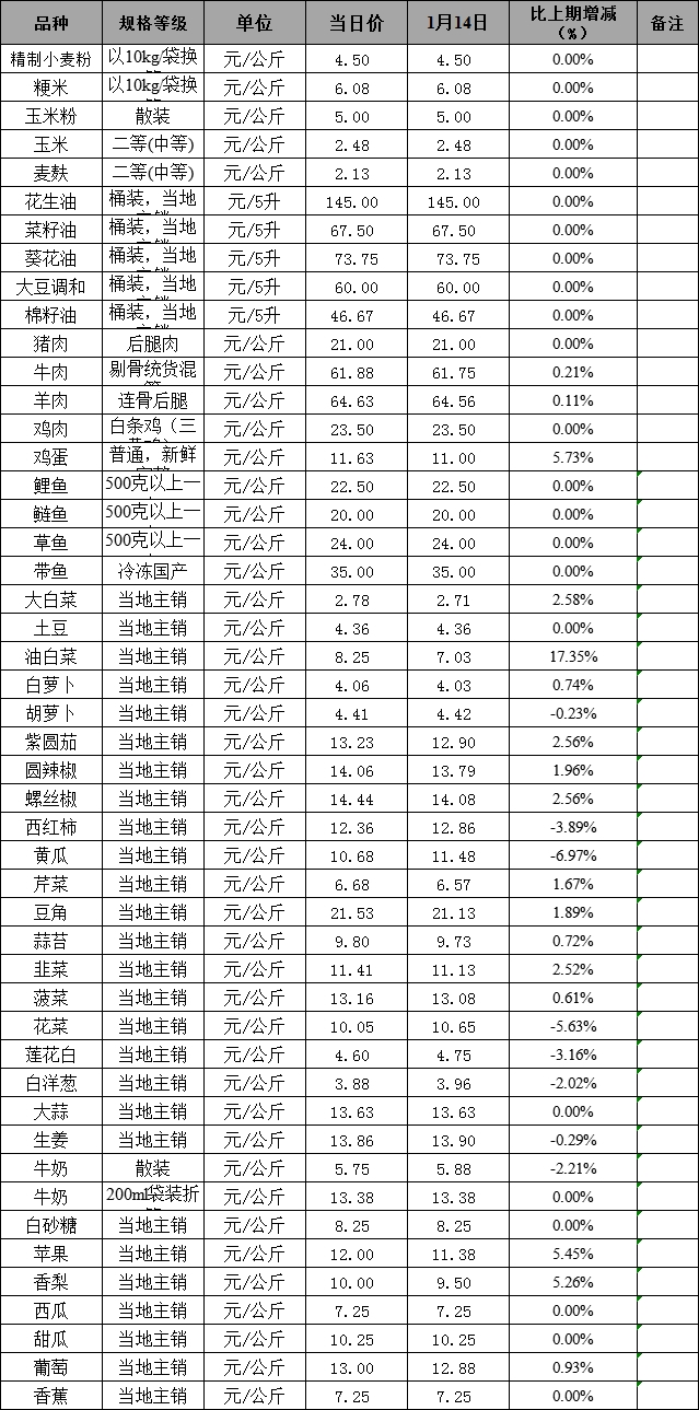 克州肉、禽、菜、水产品价格应急监测表1.21(公示)