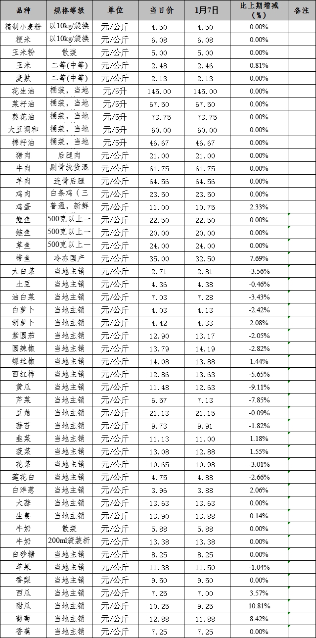 克州肉、禽、菜、水产品价格应急监测表 1.14 (公示)