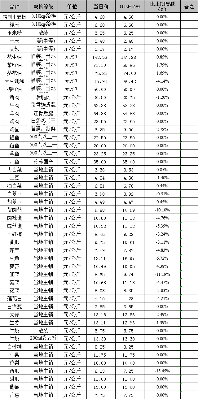 克州肉、禽、菜、水产品价格应急监测表 3.11 (公示)