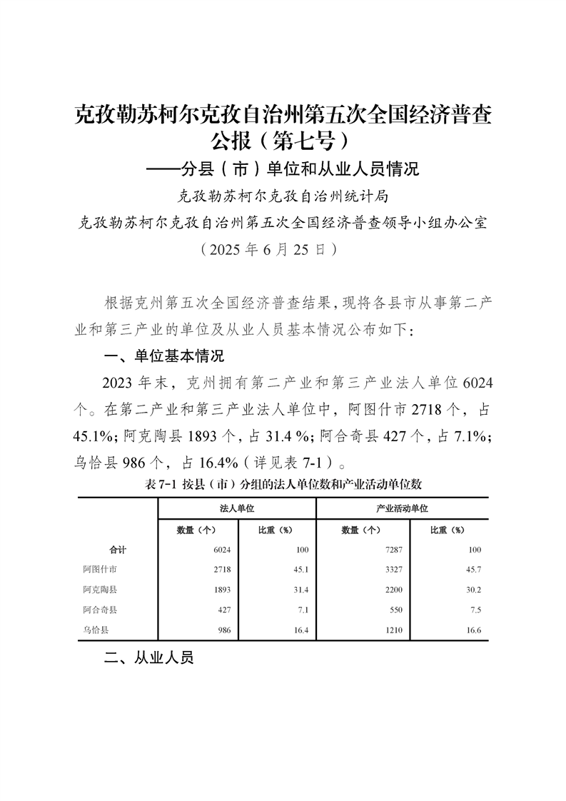 克孜勒苏柯尔克孜自治州第五次全国经济普查公报(第七号)