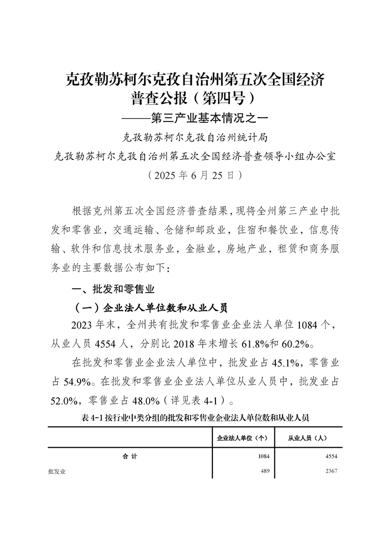 克孜勒苏柯尔克孜自治州第五次全国经济普查公报(第四号)