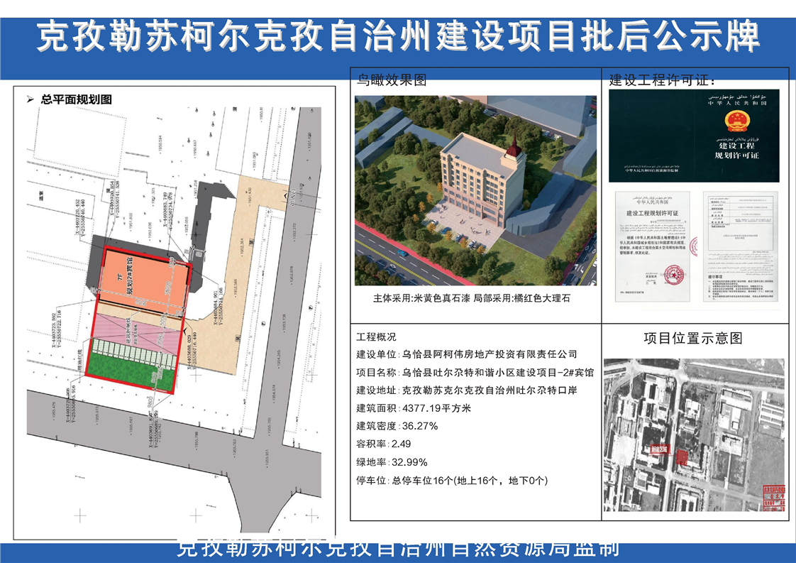 乌恰县吐尔尕特和谐小区建设项目2#宾馆批后公示