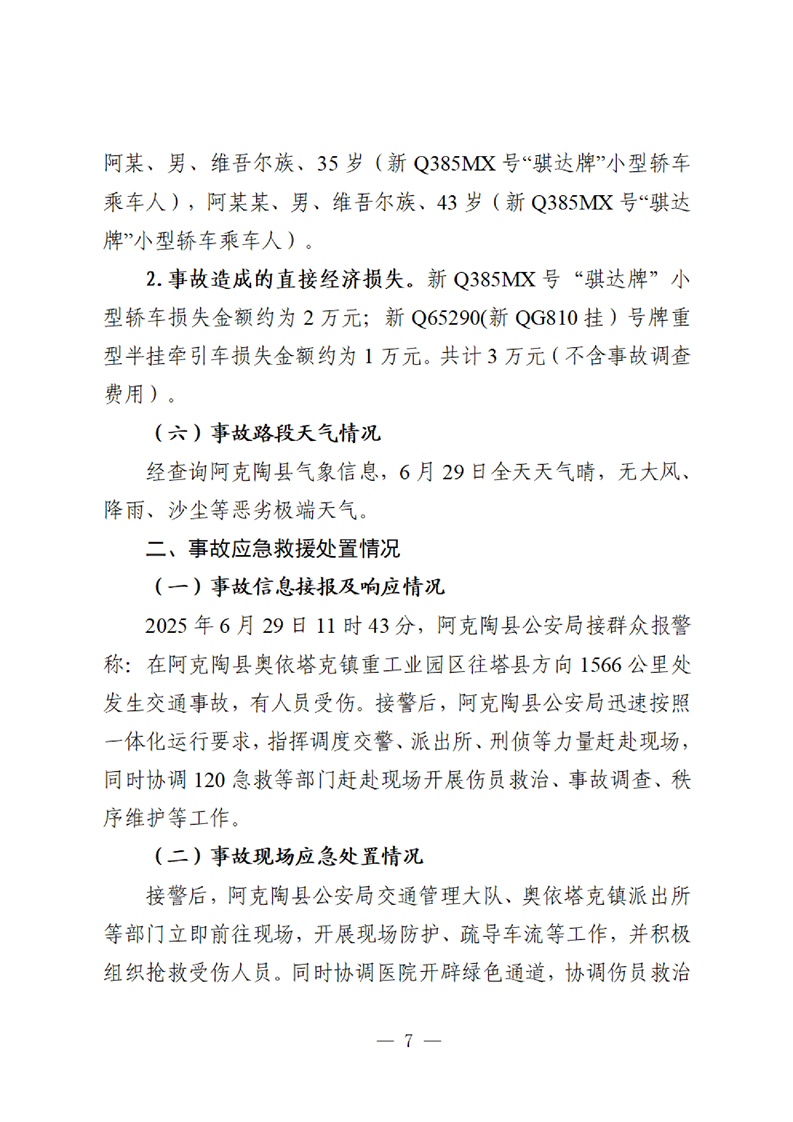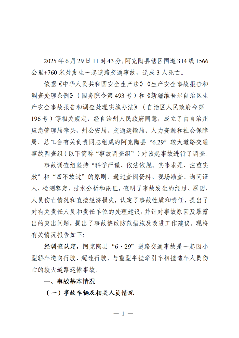 阿克陶县“6·29”较大道路运输事故调查报告