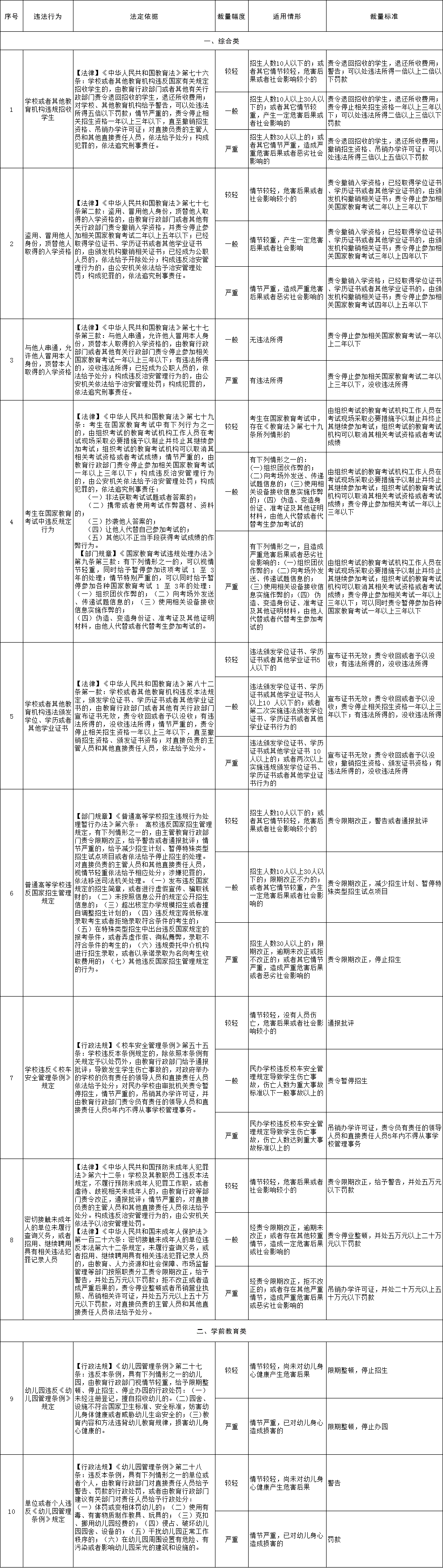 新疆维吾尔自治区 新疆生产建设兵团教育行政处罚裁量权基准(综合类)