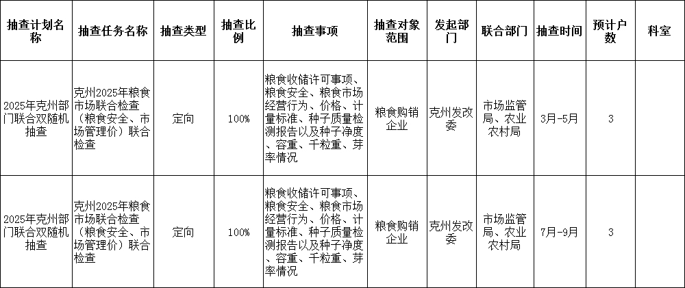 2025 年克州发展和改革委(粮食和物资储备局)跨部门综合监管重点抽查工作计划