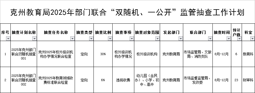 克州教育局2025年部门联合“双随机、一公开”监管抽查工作计划