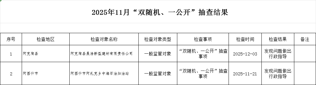2025年克州11月份“双随机、一公开”抽查结果