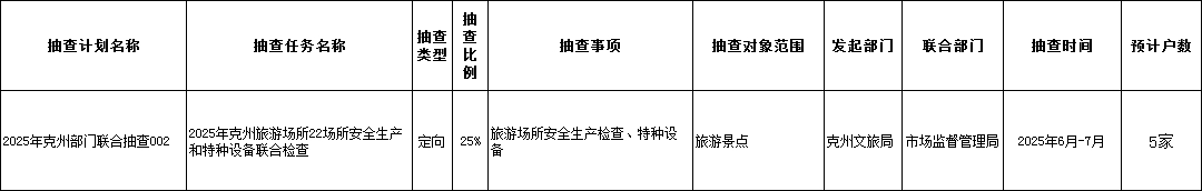 克州文化体育广播电视和旅游局文化市场领域2025年双随机重点事项检查计划
