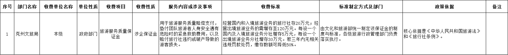 克州文旅局及下属单位综合性涉企收费目录清单