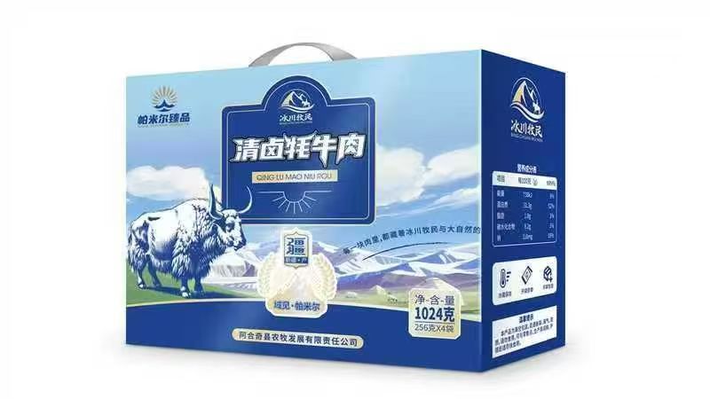 阿合奇县属于新疆克孜勒苏柯尔克孜自治州辖县,以畜牧业为主,,阿合奇县冰川羔羊和冰川牦牛生活在高寒山区,生长缓慢,在高原戈壁滩自然散养。弱碱性土壤,得雪水滋养,自由采食天然植物,低温、高运动量下,阿合奇每年冰川羔羊出栏量仅15万余只,牦牛9000余头。因此“阿合奇县冰川牦牛肉”做出来的牛肉干鲜嫩美味,口感软烂,老少皆宜。